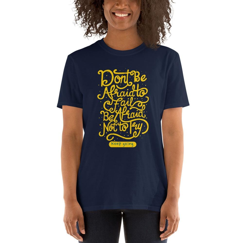 Don't Be Afraid to fail t-shirt is a high quality t-shirt. It's made of 100% ring-spun cotton and is soft and comfy. The double stitching on the neckline and sleeves add more durability to what is sure to be a favorite!