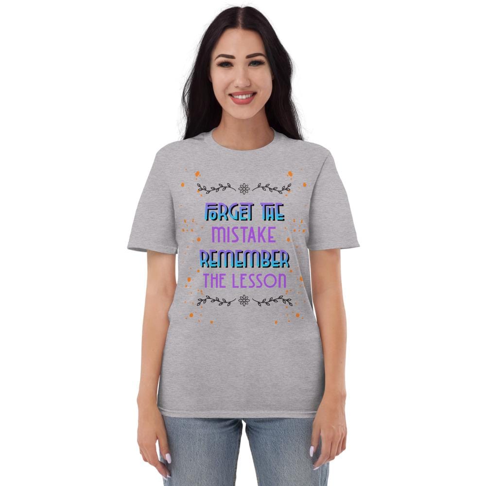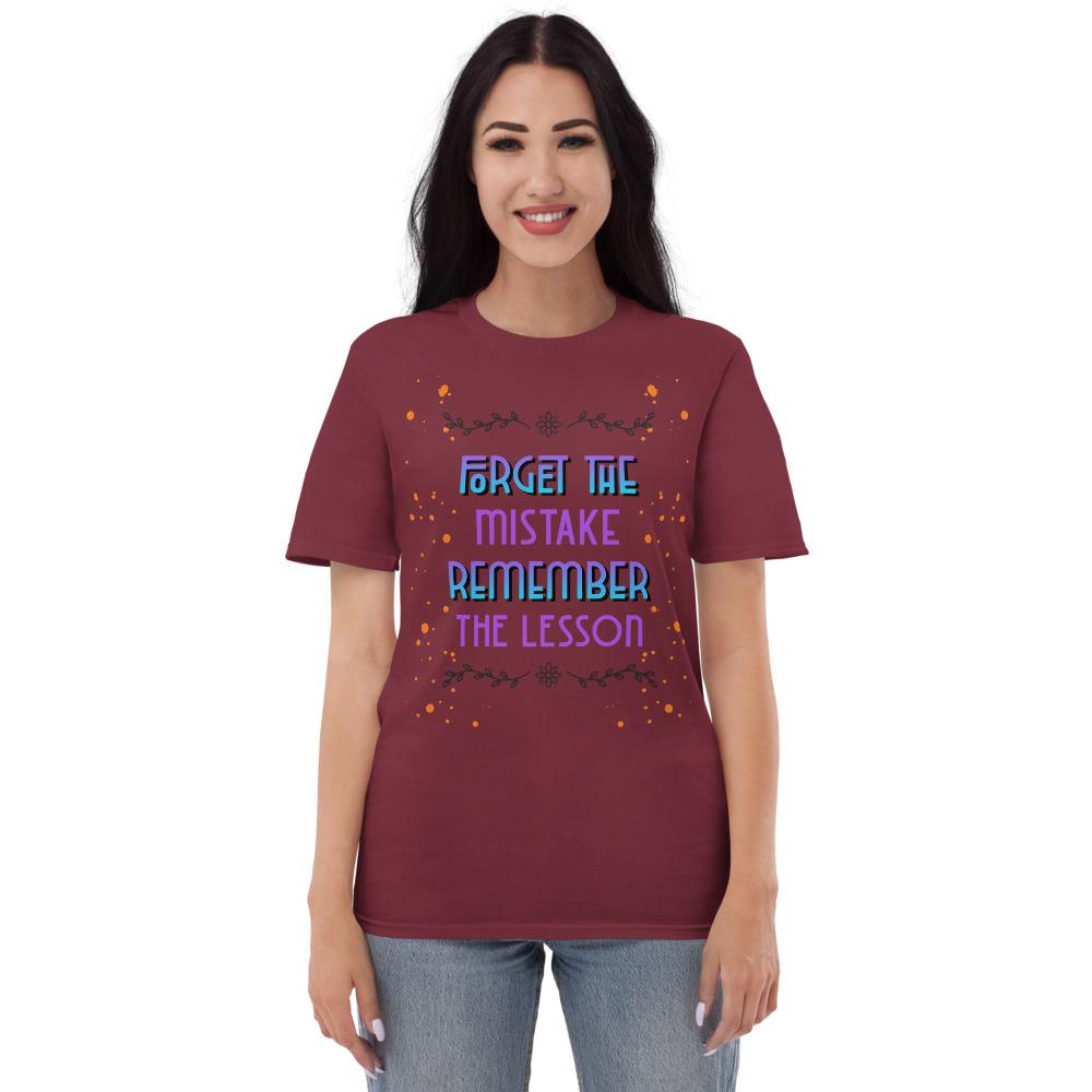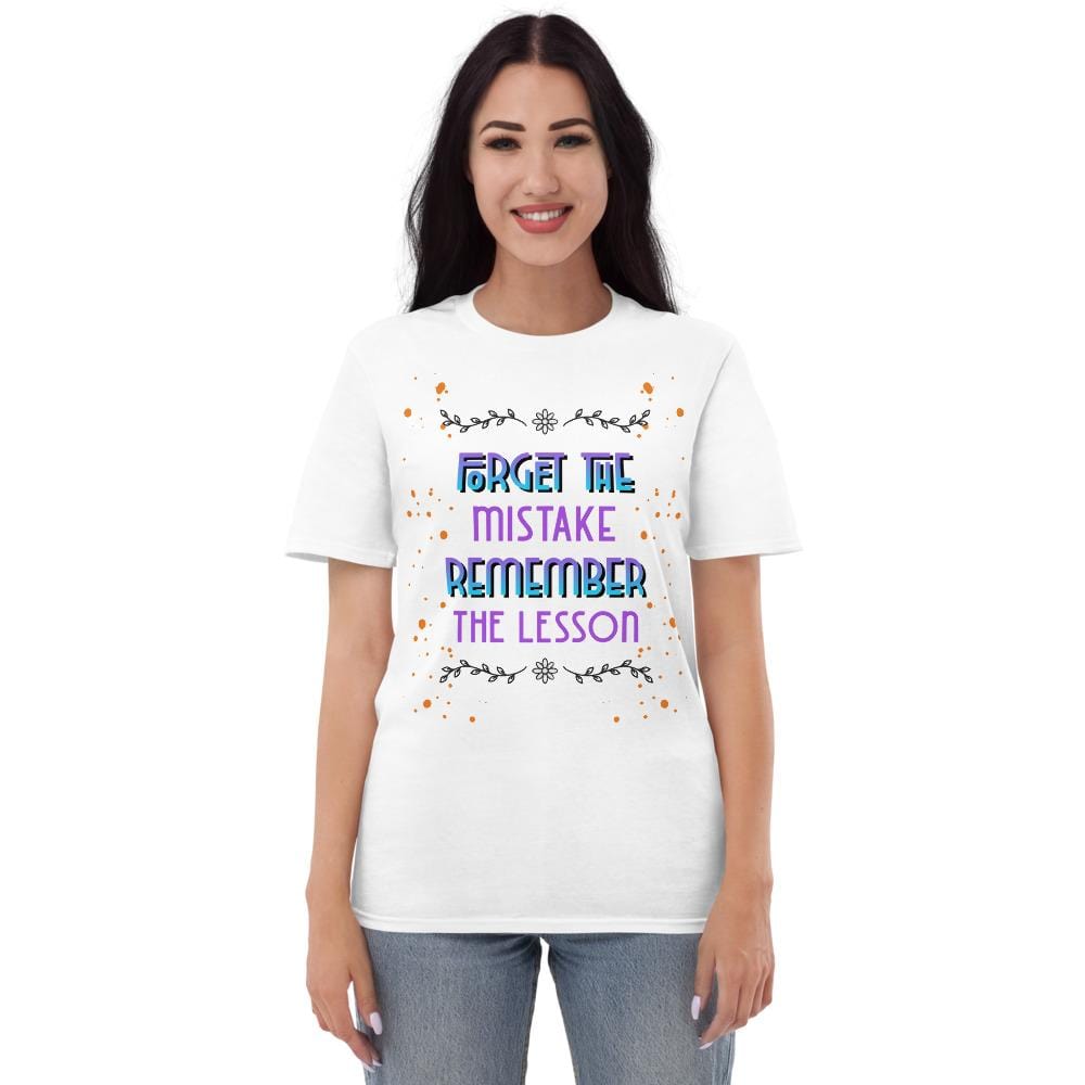 Forget the mistake remember the lesson t-shirt. This thick cotton t-shirt makes for a go-to wardrobe staple! It's comfortable, soft, and its tubular construction means it's less fitted.
