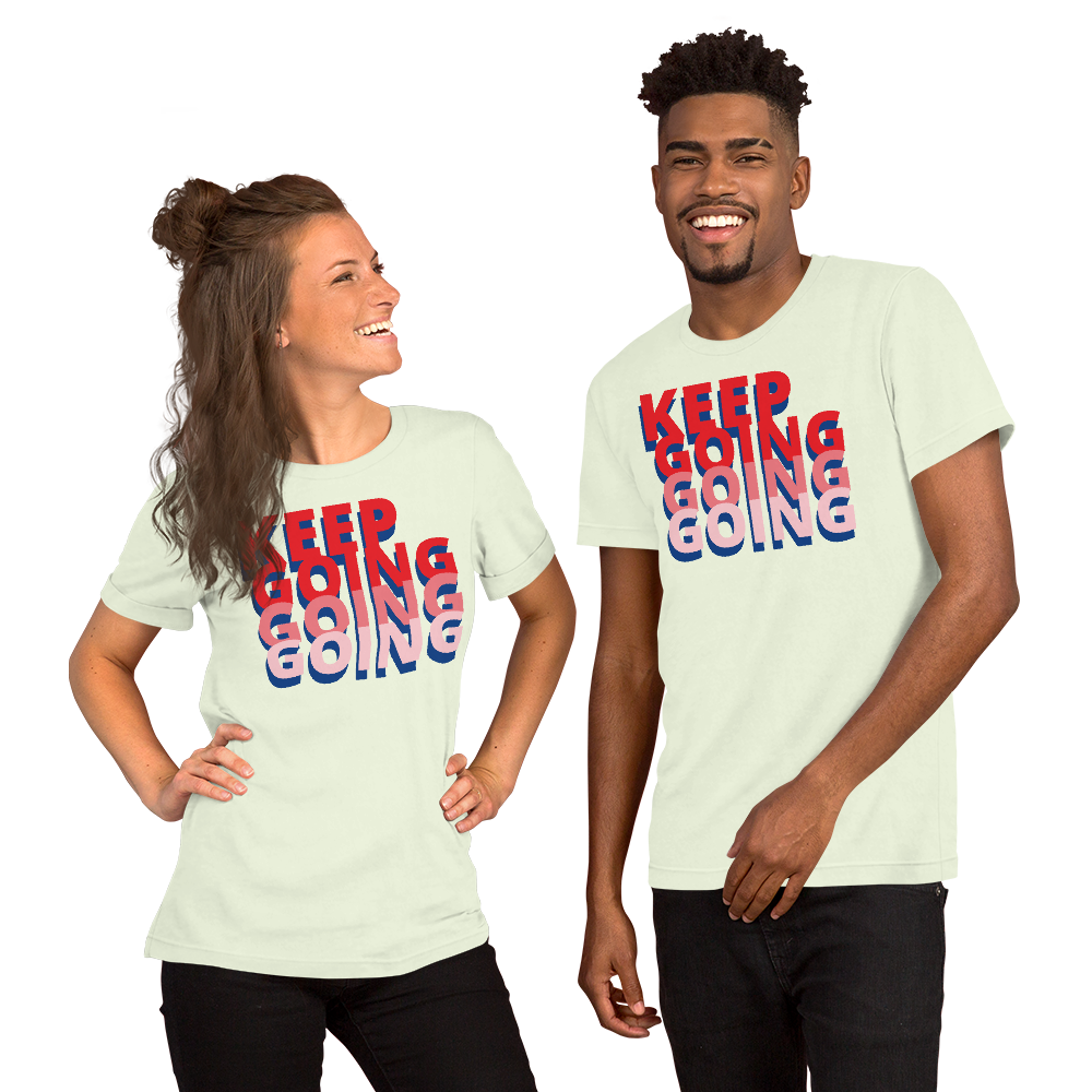 Keep Going Going Going t-Shirt is for those who never give up! This custom design is inspired by mental health. This t-shirt is everything you've dreamed of and more. It feels soft and lightweight, with the right amount of stretch. It's comfortable and flattering for both men and women.