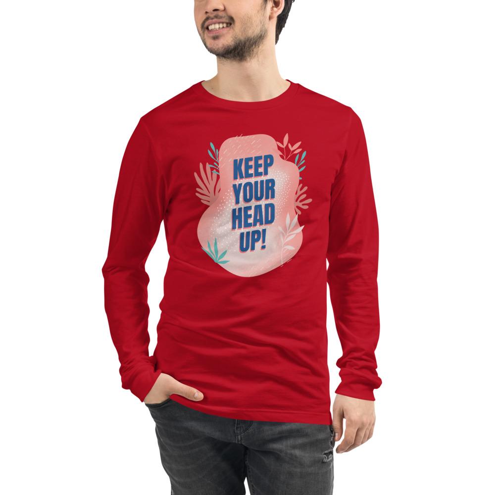 Keep your Head up t-shirt is inspired by mental health. We must keep our heads up regardless of the hardship we face everyday. For a casual look, combine it with your favorite jeans, and layer it with a button-up shirt, a zip-up hoodie, or a snazzy jacket. Dress it up with formal trousers or chinos to achieve a more professional look.