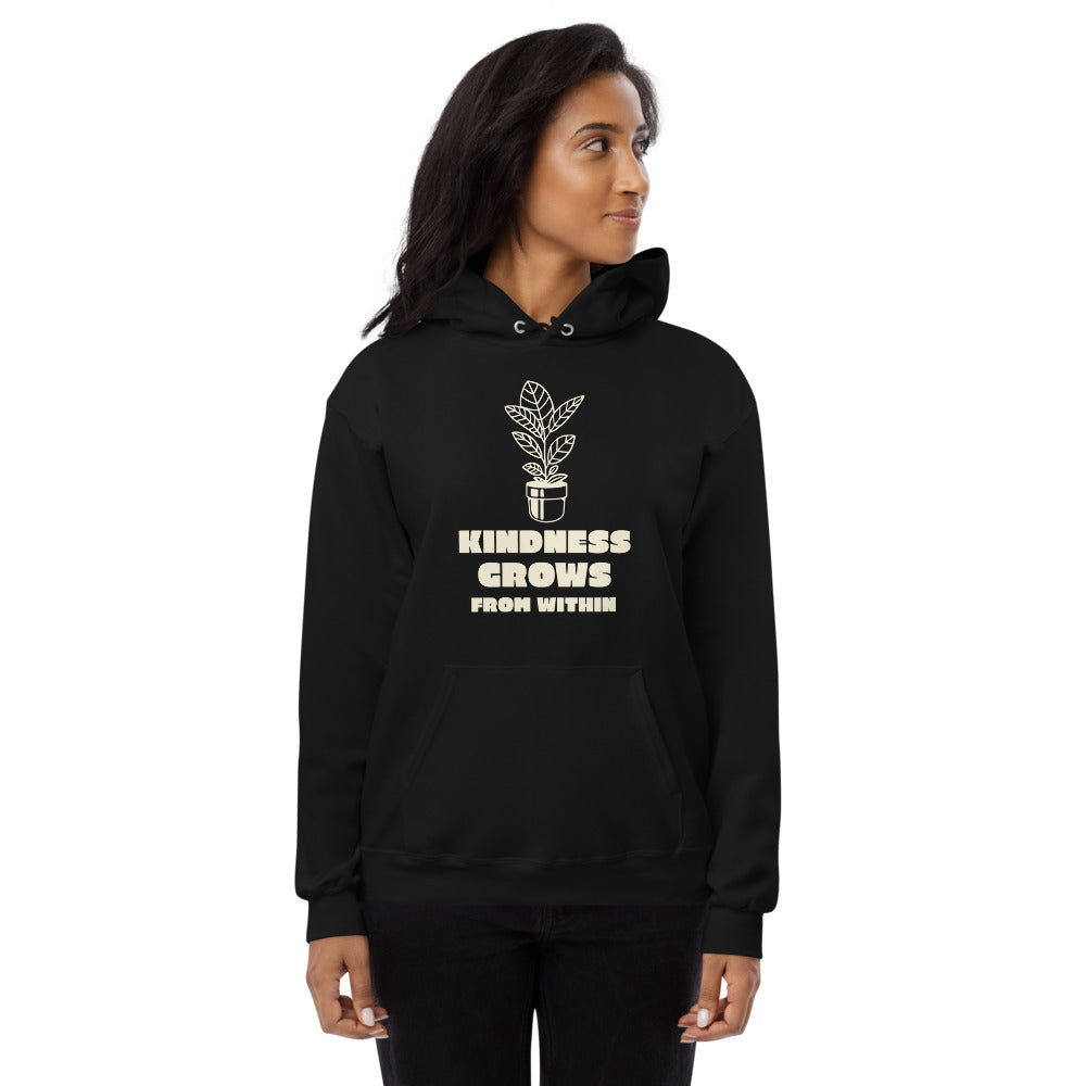 Kindness Grows from within hoodie is inspired by mental health. We all should be more kind to ourselves and each other. Choose this high quality fleece hoodie and enjoy all it has to offer. It's soft, comfy, and can be easily styled with a pair of jeans and sneakers for a cozy, yet stylish look.