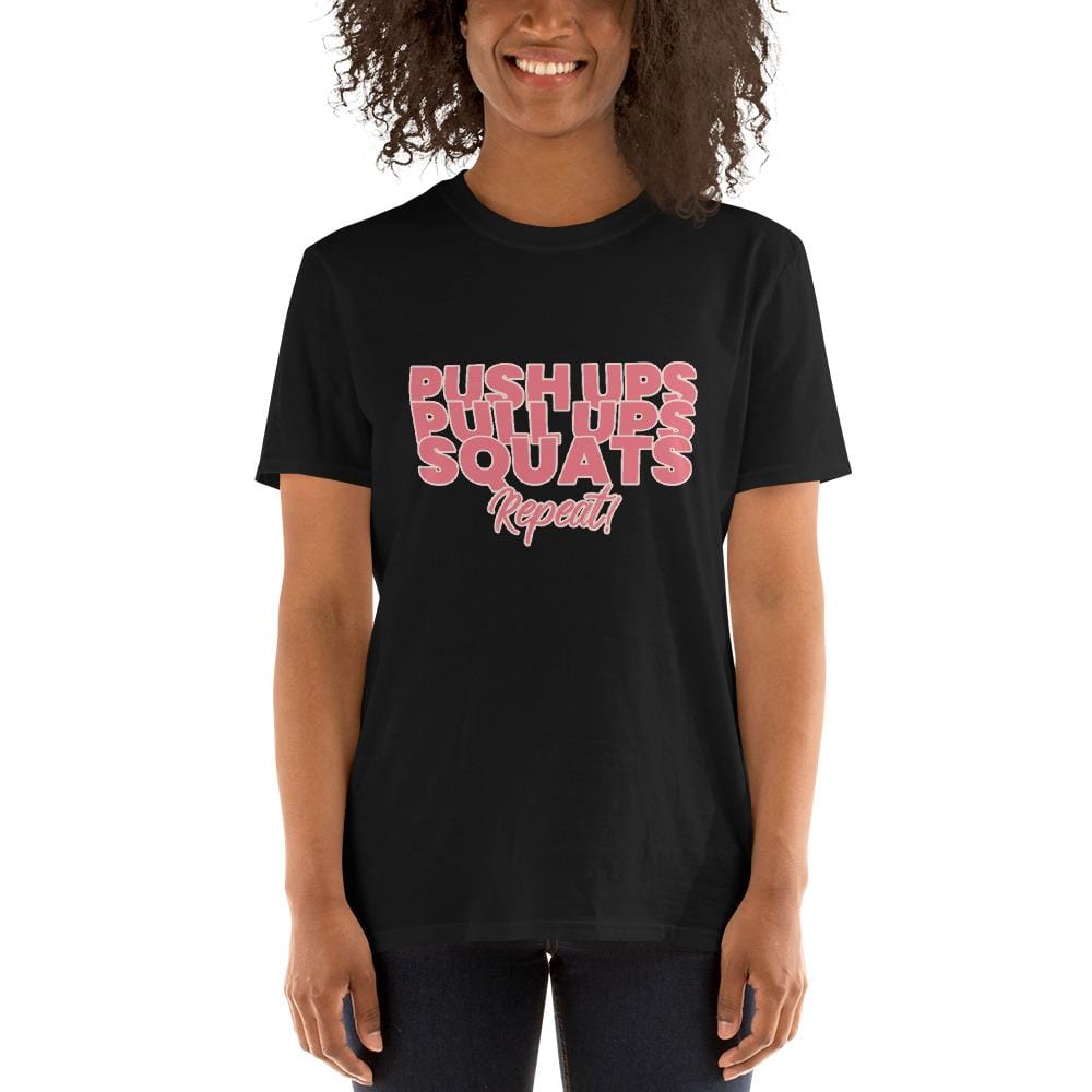 Push ups Pull ups Squats Repeat t-shirt is inspired by mental health. This unique and high quality t-shirt is made of 100% ring-spun cotton and is soft and comfy. The double stitching on the neckline and sleeves add more durability to what is sure to be a favorite!