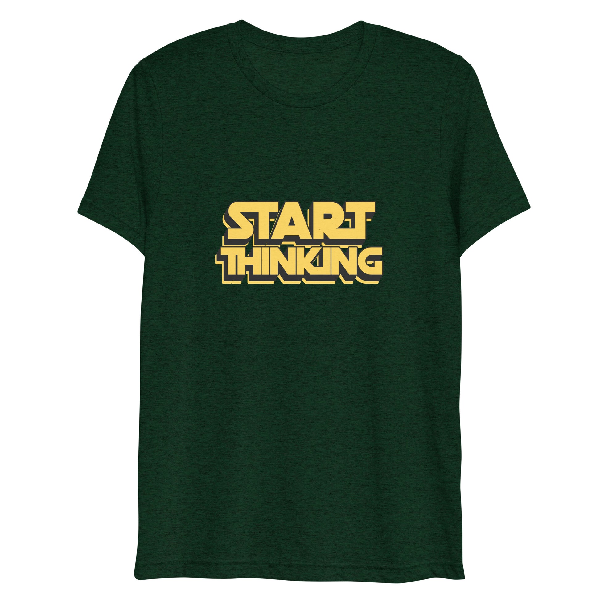 Start Thinking Short sleeve t-shirt. The tri-blend fabric creates a vintage, fitted look. And extreme durability makes this t-shirt withstand repeated washings and still remain super comfortable. Wear Conscious Clothing. Clothing with Purpose.