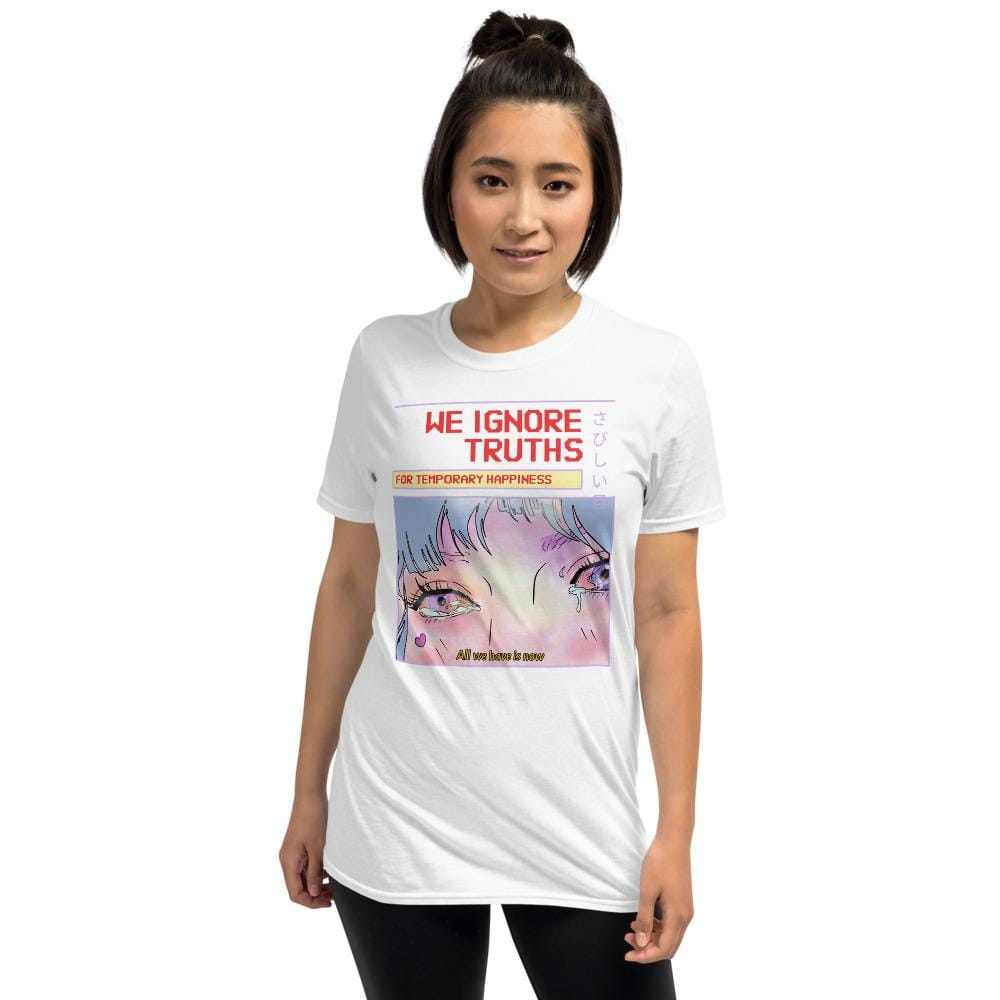 We Ignore Truths T-Shirt is unique custom design to uplift mental health. You've now found the staple t-shirt of your wardrobe. It's made of a thicker, heavier cotton, but it's still soft and comfy. And the double stitching on the neckline and sleeves add more durability to what is sure to be a favorite!